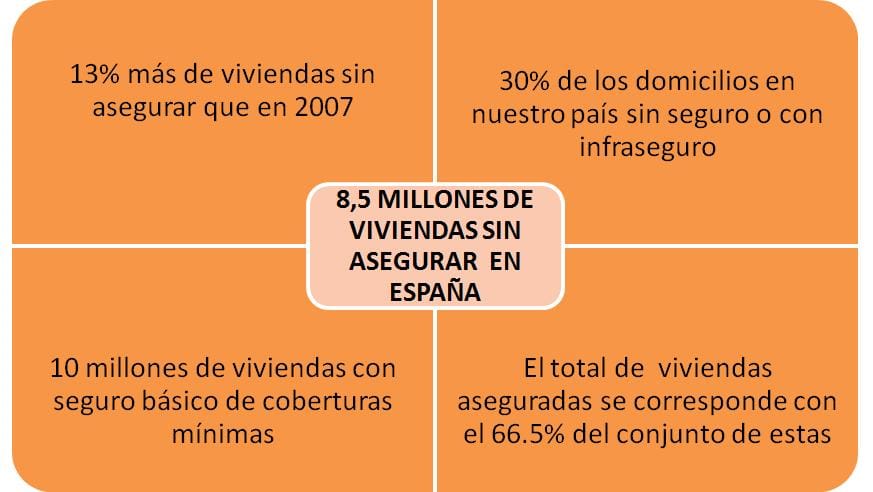 En total, en España existen más de ocho millones y medio de viviendas sin asegurar, una cifra que supone el 30% de los domicilios en este país. Además, hasta diez millones de hogares más disponen de una póliza que apenas reúne las coberturas más básicas y que, en caso de producirse un siniestro, conllevaría grandes pérdidas para sus propietarios.