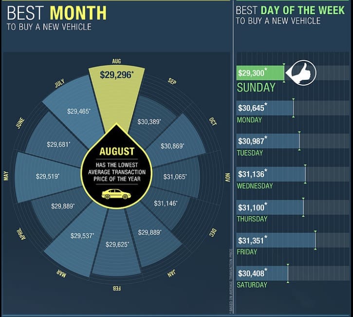 Por cierto, especial atención al hecho de que se considera el domingo como el día en el que mejores precios se pueden llegar a obtener en la compra de vehículos en Estados Unidos.